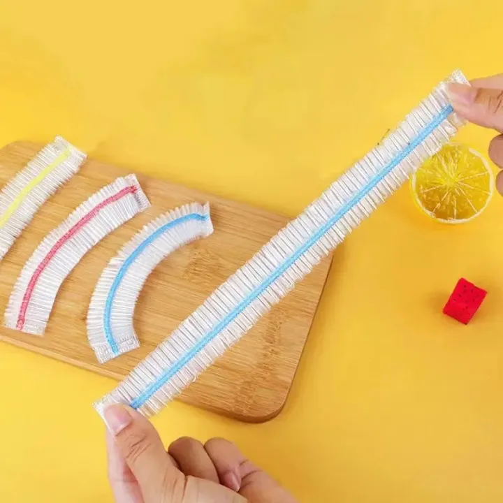 Keep food fresh with 100pcs reusable elastic food covers. Stretchable, transparent plastic wraps perfect for bowls, plates, and containers.