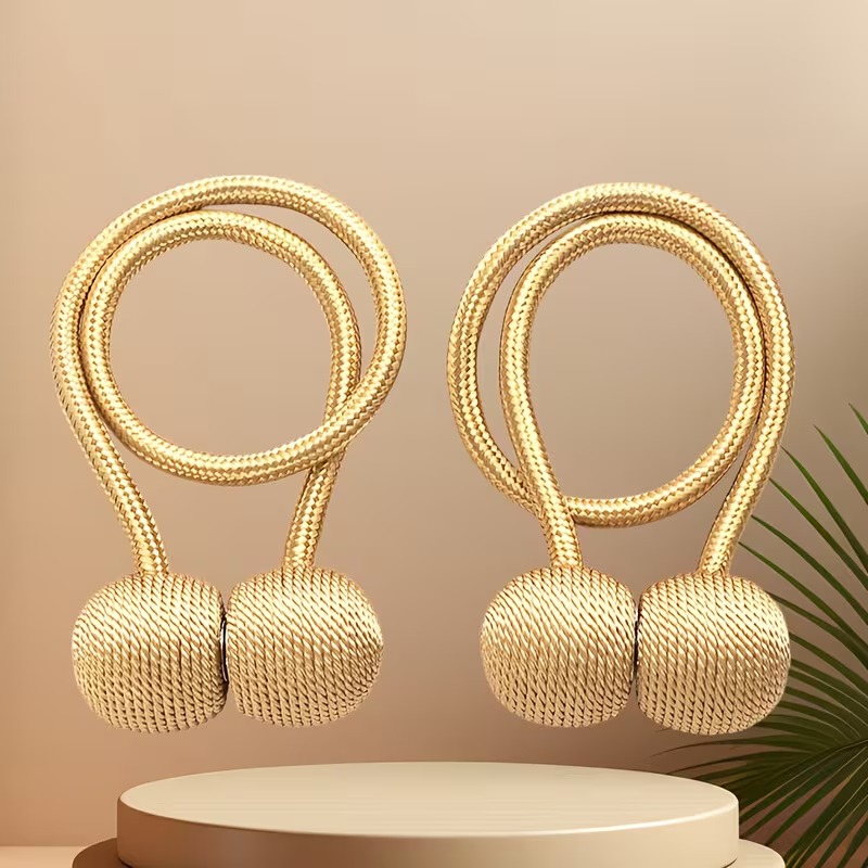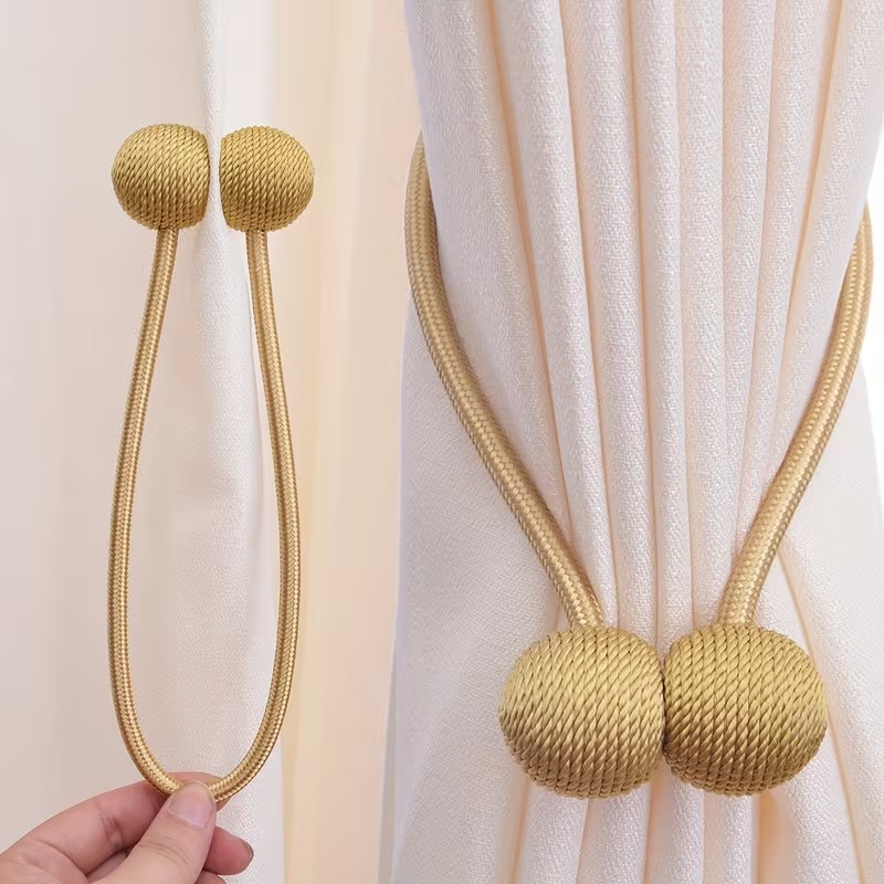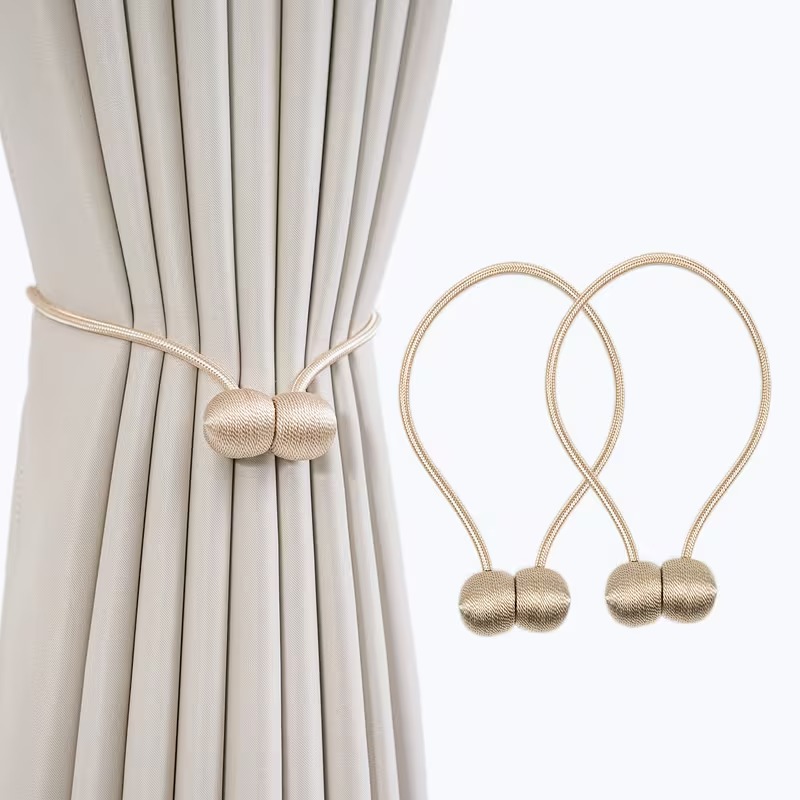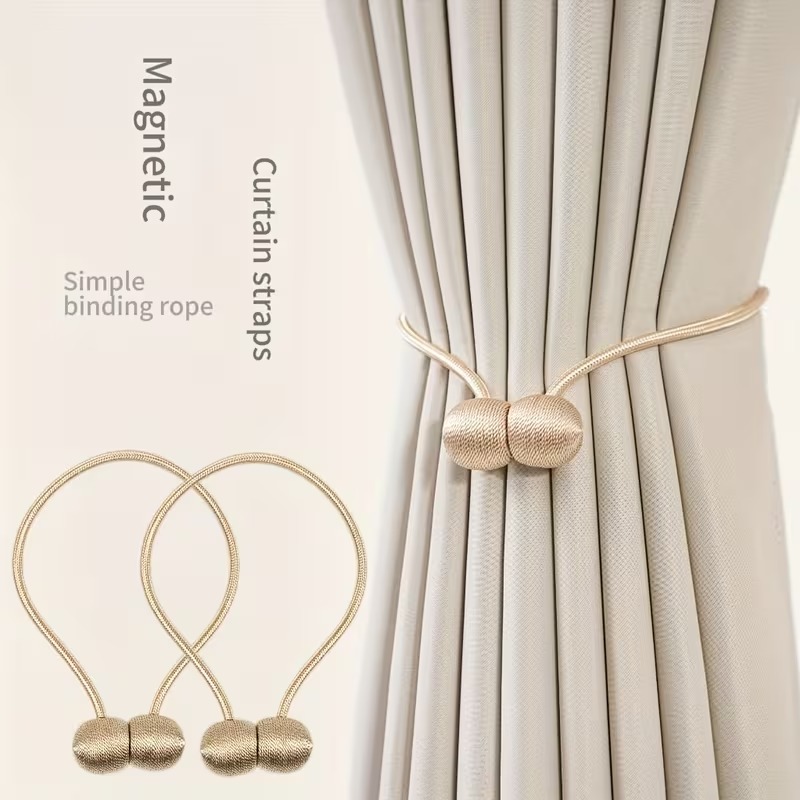 Add style and convenience to your home with these 2PCs Magnetic Curtain Tiebacks. Designed to hold curtains neatly in place without drilling or hooks, they feature strong built-in magnets that wrap securely around your curtains. Perfect for living rooms, bedrooms, offices, or balconies, these tiebacks keep your space looking organized and bright.
