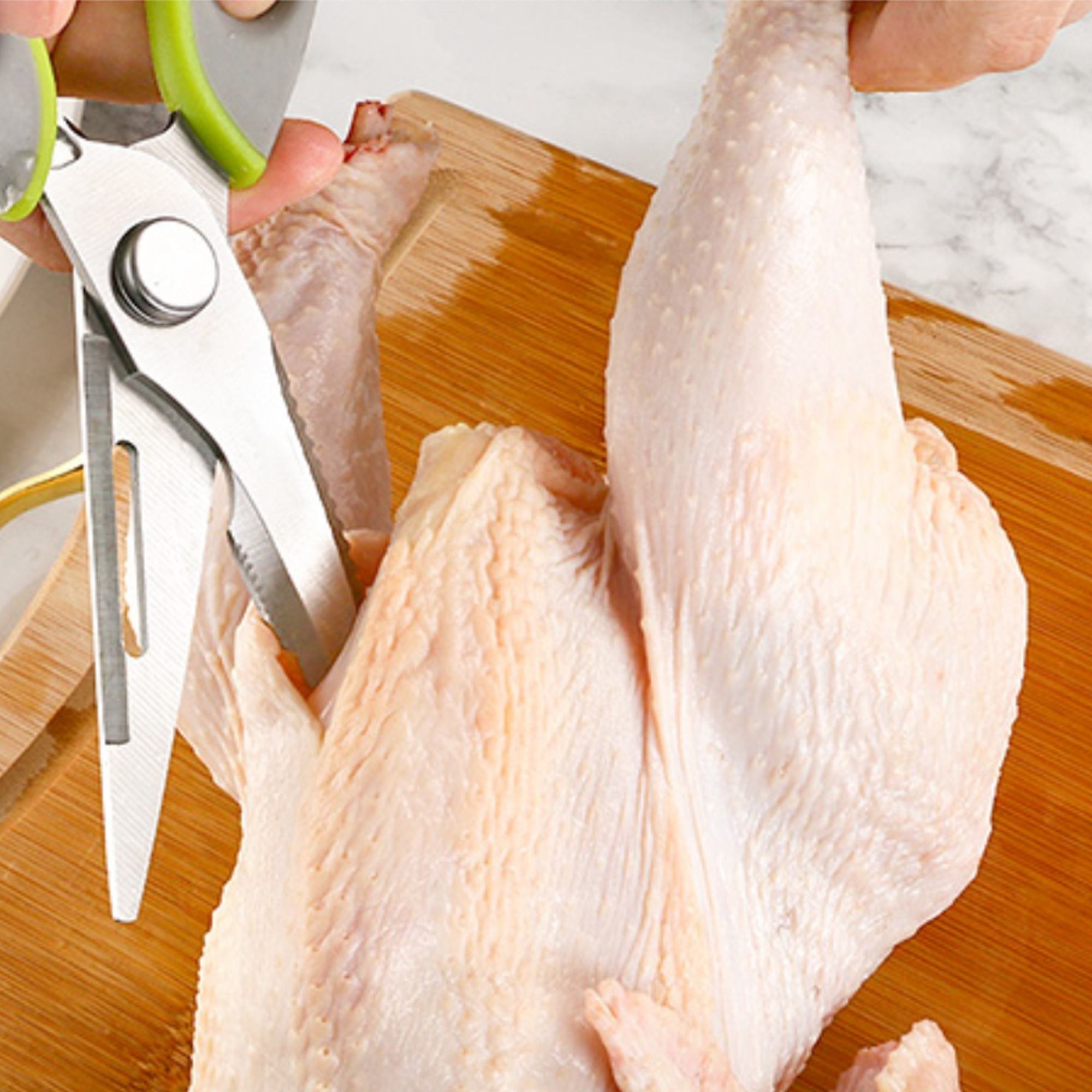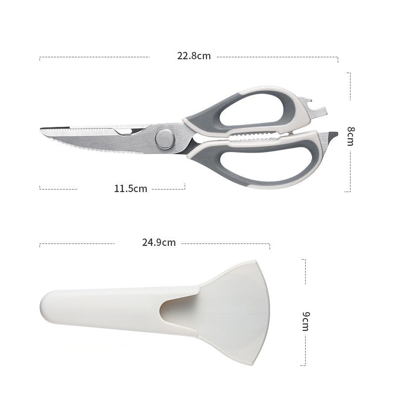 Some models also include built-in nutcrackers, bottle openers, or vegetable peelers, making them a true all-in-one kitchen companion. Easy to clean and dishwasher safe, these scissors are practical, safe, and convenient for any home cook.