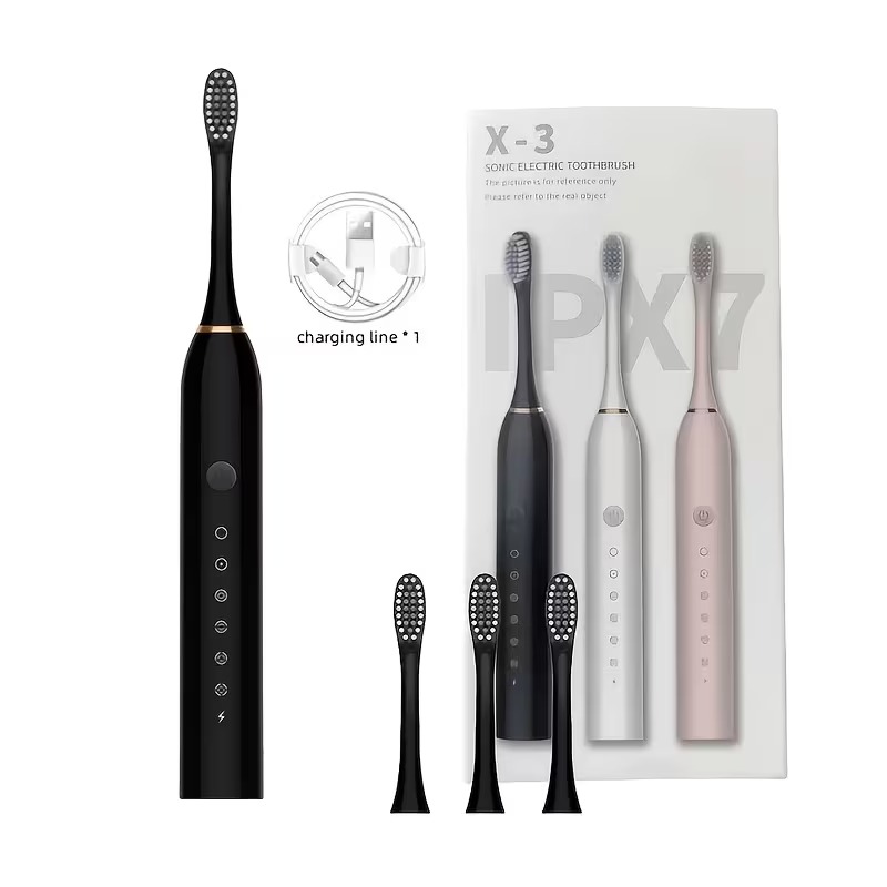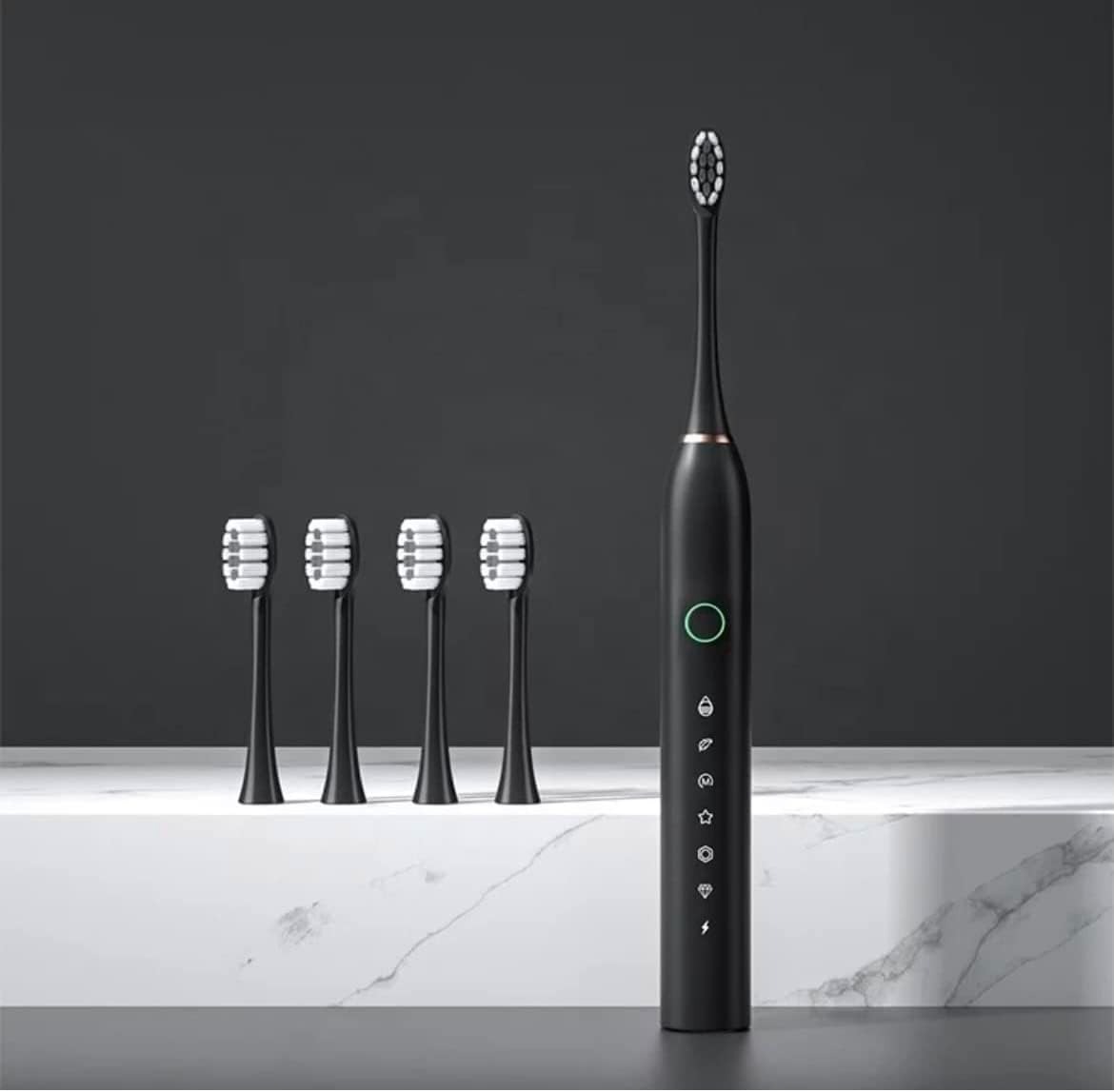This toothbrush comes with 4 replaceable brush heads, making it ideal for families. Its sonic vibration technology removes plaque effectively, promotes healthy gums, and whitens teeth over time. Upgrade your oral hygiene with this versatile, efficient, and stylish sonic toothbrush.
