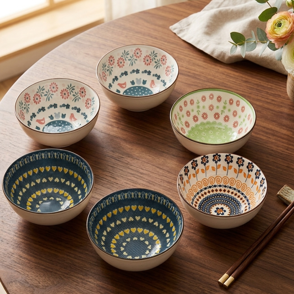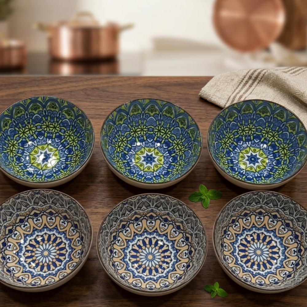 Elevate your table with this 6‑piece Bohemian porcelain bowl set. Perfect for soups, salads, and desserts, with vibrant designs and durable, food-safe porcelain.