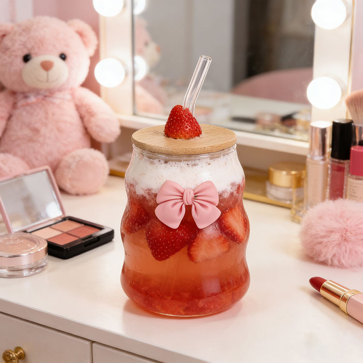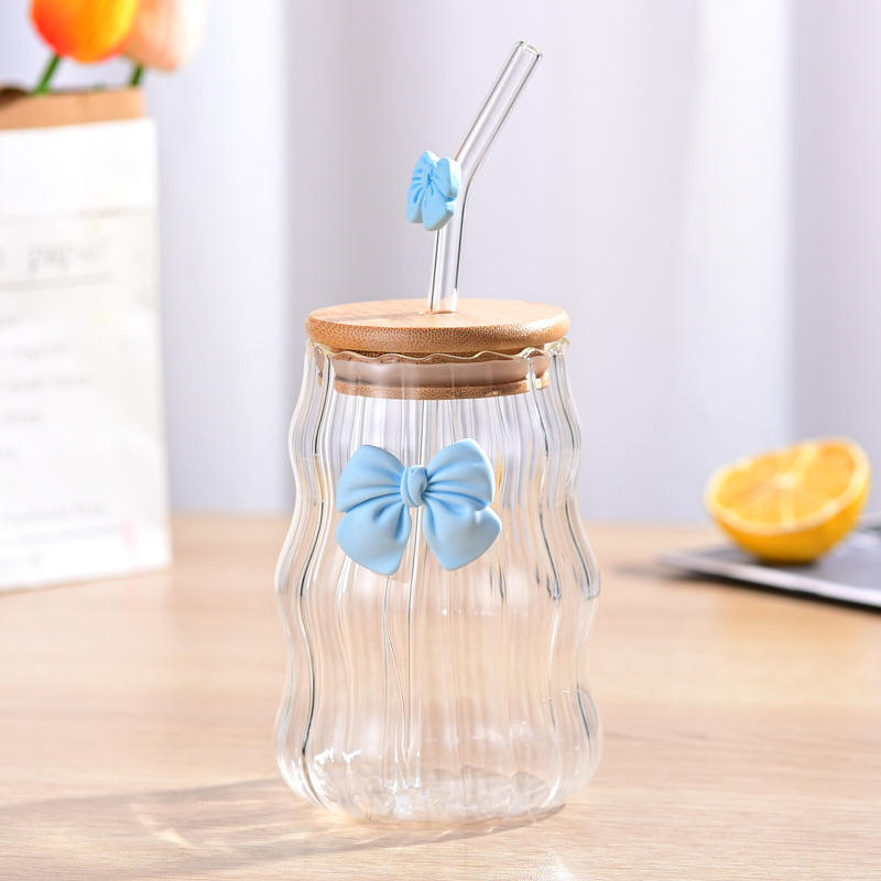Add a touch of elegance and cuteness to your drinkware with this Curvy Glass Tumbler Set with Pink Bow Charms. Designed with a unique curved shape and adorable pink bow accents, these tumblers are perfect for serving juices, iced coffee, smoothies, or water in style.