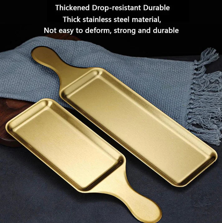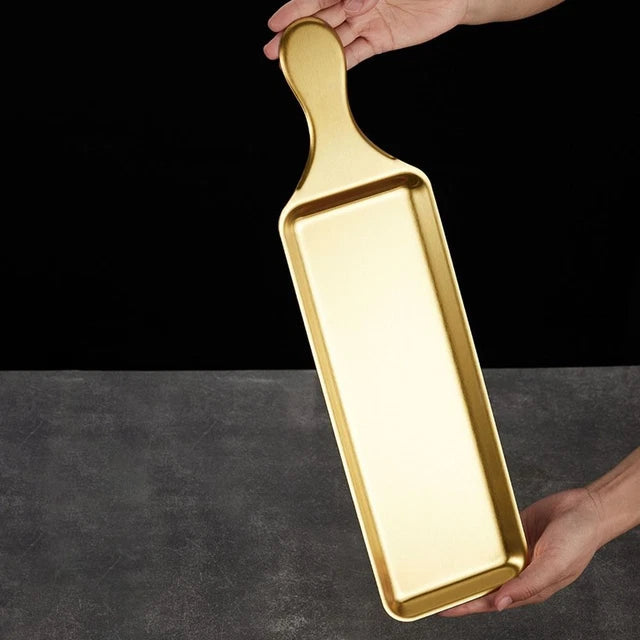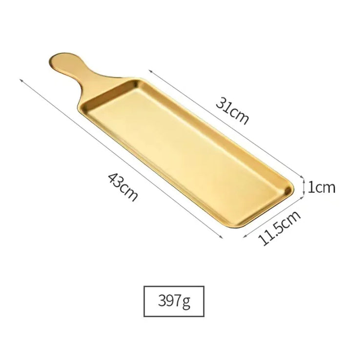 Perfect for modern dining and festive occasions, this golden serving tray turns every presentation into a statement.