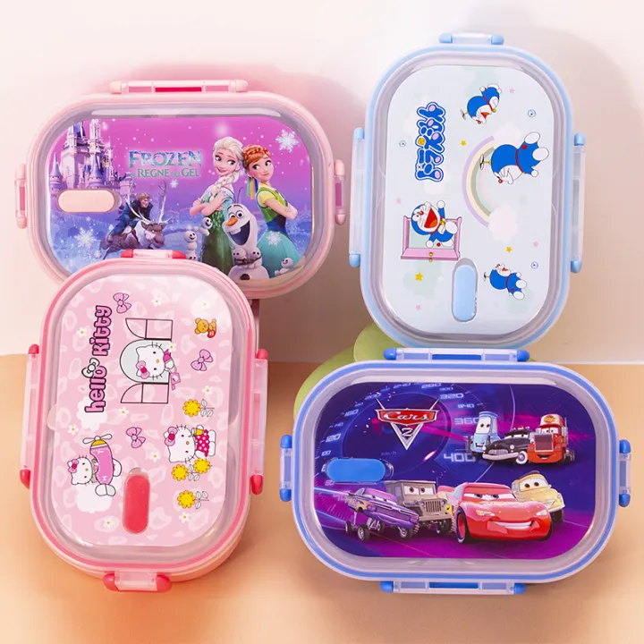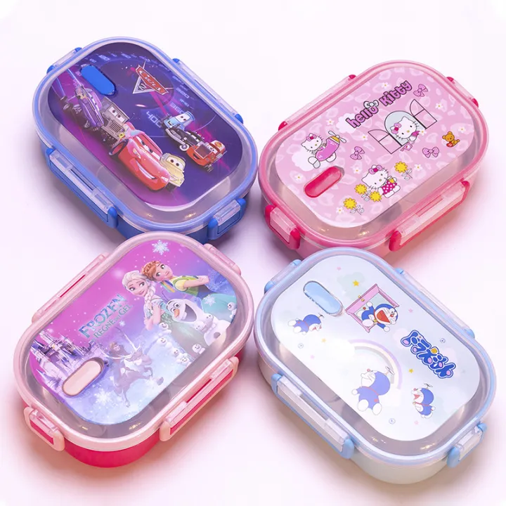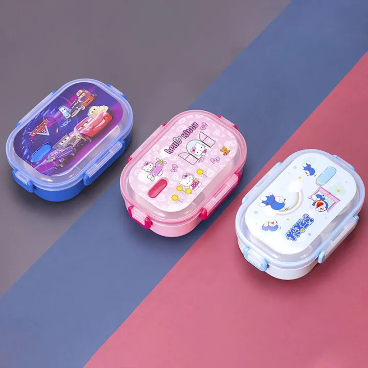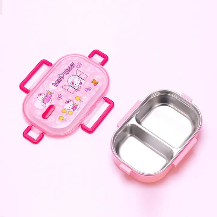 School Lunch Box Hello Kitty Cartoon Printed – Stainless Steel With Spoon