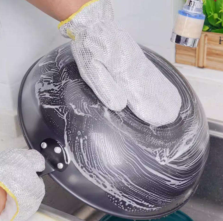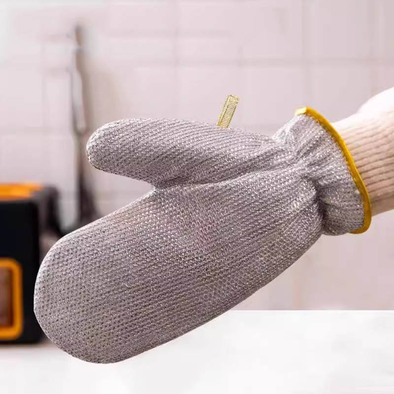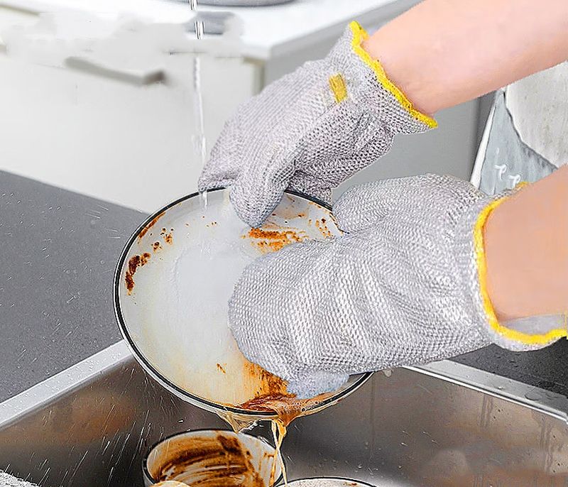 Introducing the Rust Removal Cleaning Gloves, a versatile solution for your kitchen cleaning needs. These magic dishwashing gloves are designed with steel wire cleaning rag, making them perfect for tackling tough stains on microwave, stove, and other surfaces. The machine washable feature ensures easy maintenance, while the durable construction guarantees long-lasting use. Say goodbye to stubborn grime and hello to effortless cleaning with these multi-functional dish gloves. The product attributes are valid. No additional keywords provided. The tone of voice is in accordance with Informative. No amendments needed