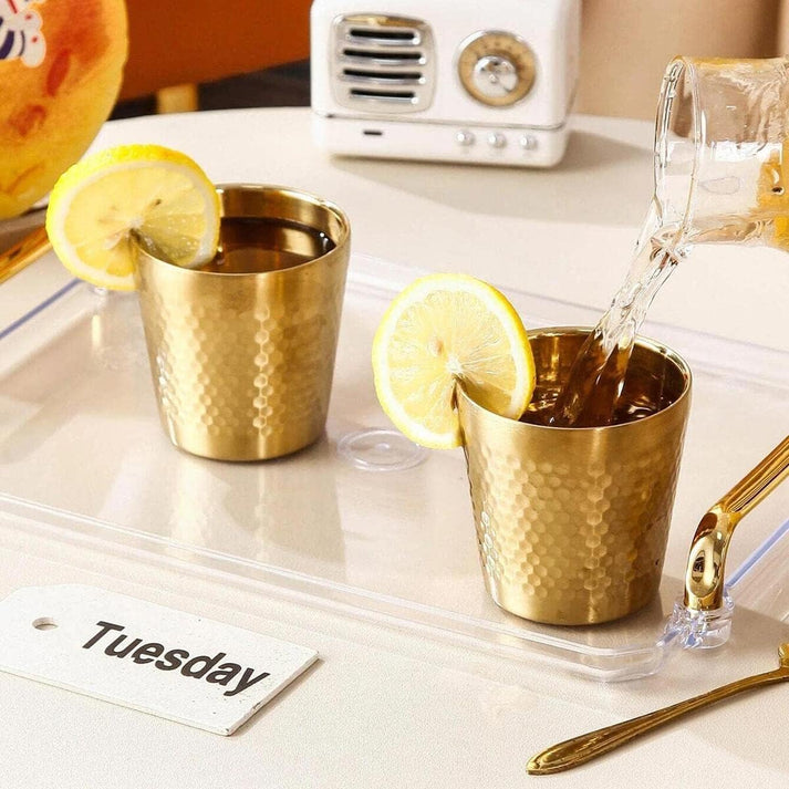 Stainless Steel Drinking Glass Hammered Golden (Small 260ml)