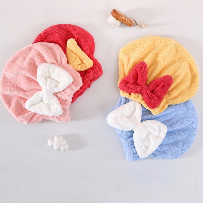 Keep hair dry and stylish with this water-absorbent shower cap with bow. Soft, quick-dry microfiber for all hair types – perfect for home or travel.